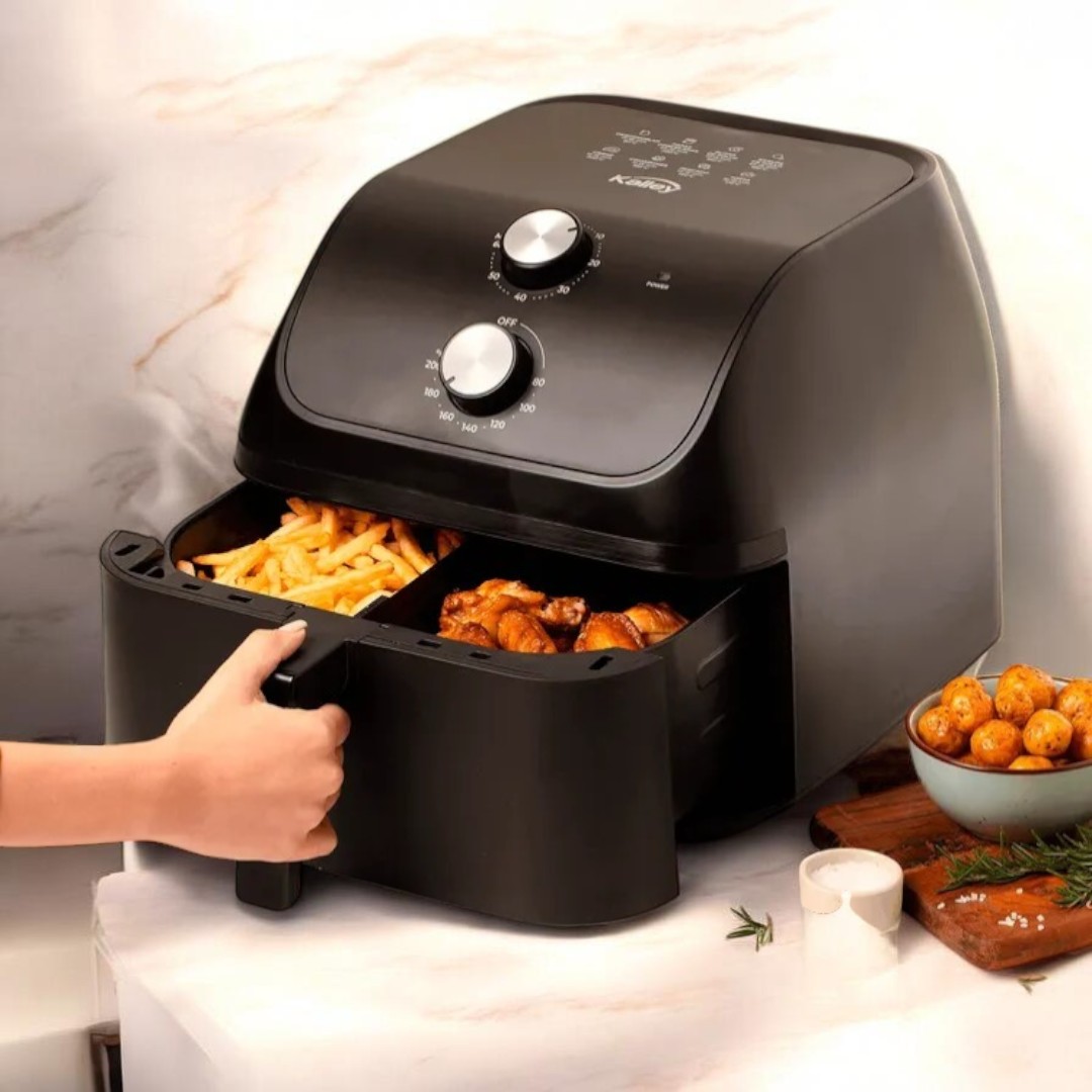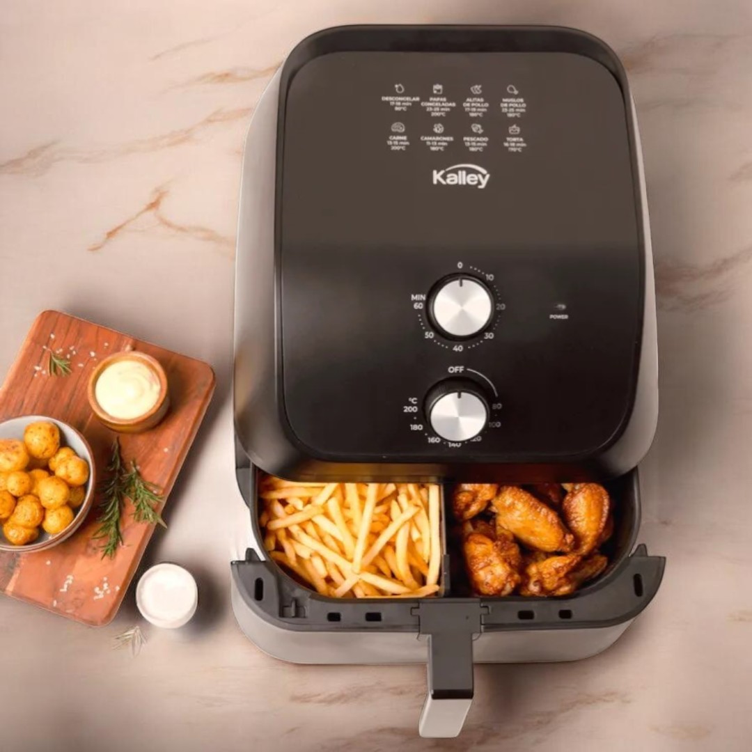Disfruta de comidas más saludables sin renunciar al sabor con la freidora de aire Kalley K-MAF75 de 7.5 litros. Su generosa capacidad te permite cocinar porciones para toda la familia, desde crocantes papas hasta jugosas carnes, con hasta 80% menos grasa que una fritura tradicional.